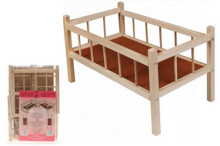 Postýlka dřevěná 50x28x27,5cm. Baleno v igelovém sáčku - dodáno rozložené.