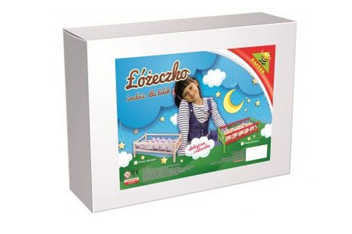 Krásná dřevěná - barevná - postýlka pro panenky s polštářem a peřinkou. Je vyrobena z kvalitních materiálů. Rozměr: 43x23x18cm