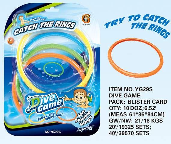 Chyť potápějící kroužek. Balení obsahuje 4 kroužky v různých