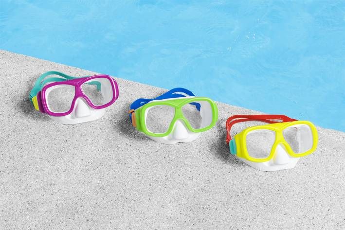 Bestway potápěčské brýle AQUANAUT mají letecký styl, polykarbonátové čočky s ochranným povrchem chránícím proti UV záření. Dvojitý lem pro přesné přitisknutí k obličeji a zabránění průsaku vody do brýlí. Plně nastavitelný dělený silikonový pásek. 100% bez latexu. 3 barevné provedení -žlutá, růžová, zelená . Obsahuje: 1 potápěčské brýle. Věk: 7+
