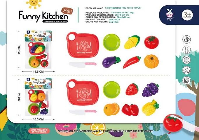 Potraviny ke krájení. Rozměry krájecího prkénka 12,5x10x1 cm. 2 varianty - zelenina, ovoce.