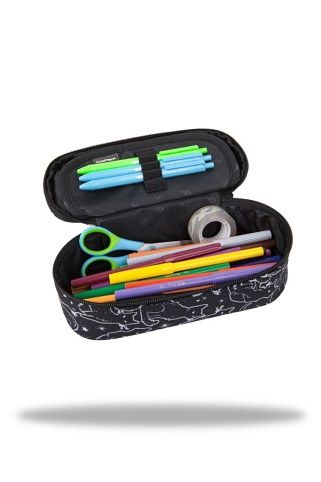 Školní pouzdro CoolPack Campus s jednou prostornou komorou. Jedna klopa s organizérem na psací potřeby a síťovaná kapsa na zip.