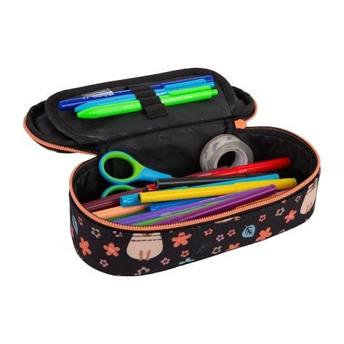 Školní pouzdro CoolPack Campus s jednou prostornou komorou. Jedna klopa s organizérem na psací potřeby a síťovaná kapsa na zip.