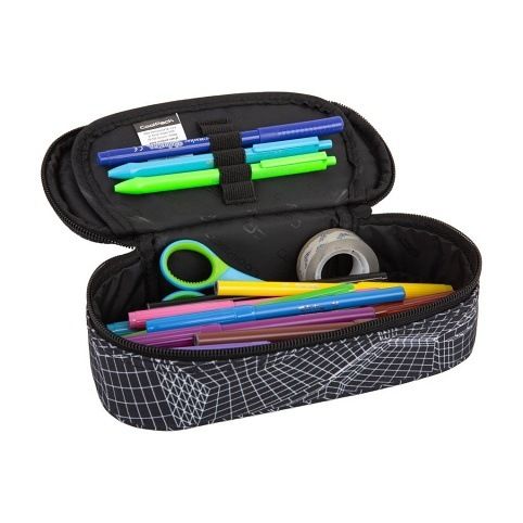 Školní pouzdro CoolPack Campus s jednou prostornou komorou. Jedna klopa s organizérem na psací potřeby a síťovaná kapsa na zip.