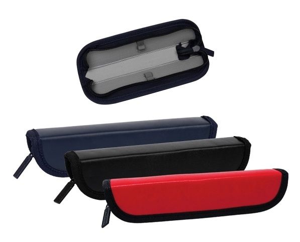 Malé koženkové pouzdro se 4 smyčkami. Rozměr zavřeného pouzdra: 190x45x30mm. Dodávané v mixu barev (černé, modré a červené).