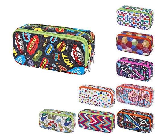 Textilní pouzdro na ochranu psacích potřeb- uzavíratelné pomocí kvalitních zipů s velkými taháčky pro snadnou manipulaci- pouzdro je nevybavené- mix motivů