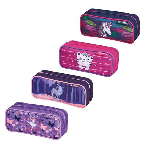 20,5 x 7 x 9 cm, dvě kapsy na zip, materiál: polyester, mix motivů: jednorožec, kočka, fantazie, víla