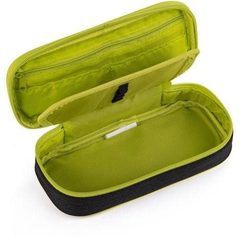 Školní pouzdro etue OXY v zeleno-černém provedení. Pouzdro je opatřeno pevnými zipy, kapsičkou na zip a klopou s pevnými poutky po obou stranách. Pod klopou je místo pro volné uložení psacích potřeb nebo jiných drobností. Vhodné pro školáky na 2. stupni a starší studenty.