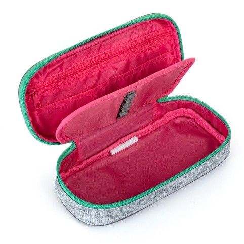 Školní pouzdro etue je opatřeno pevnými zipy, kapsičkou na zip a klopou s pevnými poutky po obou stranách. Pod klopou je místo pro volné uložení psacích potřeb nebo jiných drobností. Vhodné pro školáky na 2. stupni a starší studenty.
