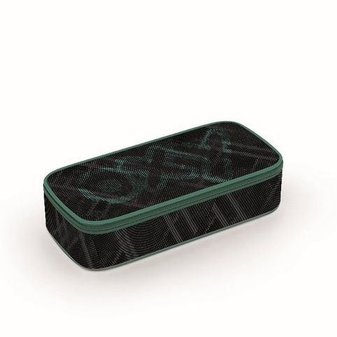 Školní pouzdro etue OXY v černo-zeleném provedení. Pouzdro je opatřeno pevnými zipy, kapsičkou na zip a klopou s pevnými poutky po obou stranách. Pod klopou je místo pro volné uložení psacích potřeb nebo jiných drobností. Vhodné pro školáky na 2. stupni a starší studenty.