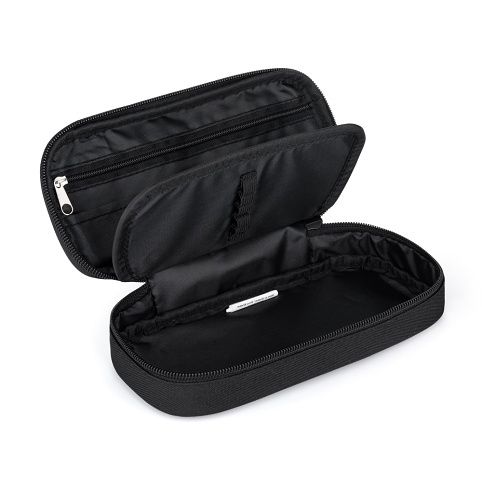 Školní pouzdro etue v modrozeleném provedení. Pouzdro je opatřeno pevnými zipy, kapsičkou na zip a klopou s pevnými poutky po obou stranách. Pod klopou je místo pro volné uložení psacích potřeb nebo jiných drobností. Vhodné pro školáky na 2. stupni a starší studenty.