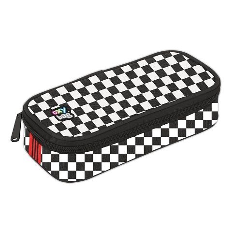 Školní pouzdro etue. Pouzdro je opatřeno pevnými zipy, kapsičkou na zip a klopou s pevnými poutky po obou stranách. Pod klopou je místo pro volné uložení psacích potřeb nebo jiných drobností. Vhodné pro školáky na 2. stupni a starší studenty.