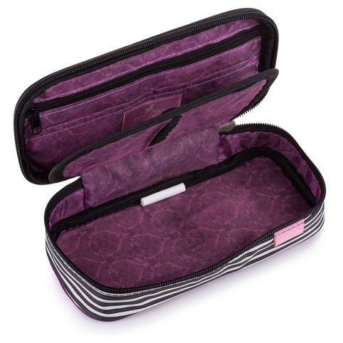 Školní pouzdro etue je opatřeno pevnými zipy, kapsičkou na zip a klopou s pevnými poutky po obou stranách. Pod klopou je místo pro volné uložení psacích potřeb nebo jiných drobností. Vhodné pro školáky na 2. stupni a starší studenty.
