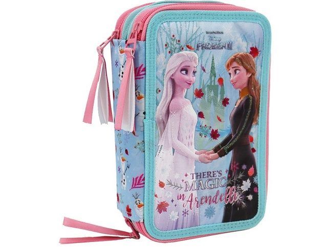 Pouzdro Frozen, 3 patra, naplněné. Snad každý školák potřebuje pouzdro na své psací potřeby. Ideální volbou může být pouzdro Frozen, které je vybavé a pro praktické uložení psacích potřeb má několik pružných gumových poutek. Penál obsahuje základní vybavení jako jsou pastelky, fixy, tužky, gumu, ořezávátko, pravítko 12 cm, rozvrh hodin. Penál má pevný zip s velkým taháčkem pro snadnou manipulaci. Vše co má správný penál mít. Materiál: polyester. Rozměr: 20 x 12,5 x 5,5cmVhodné pro děti od 6 let.