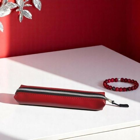 Pouzdro je vyrobeno na dotek z příjemného materiálu - imitace kůže. Svou velikosti je ideální do batohu či kabelky. Pojme drobnosti jako jsou tužky, peníze, klíče nebo drobnou kosmetiku.