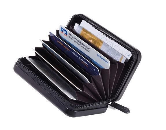 Uchovávejte své kreditní karty ve stylovém pevném pouzdru s kufříkovým designem.