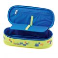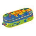 Praktický a prostorný oválný penál Colour bricks. Je vybaven vnitřní kapsou na zip a rozvrhem hodin, který je vložen pod fólií na klopě. Ta odděluje horní část penálu a má na sobě gumičky pro uchycení potřeb na psaní. Každý zip je ukončen ozdobou.
