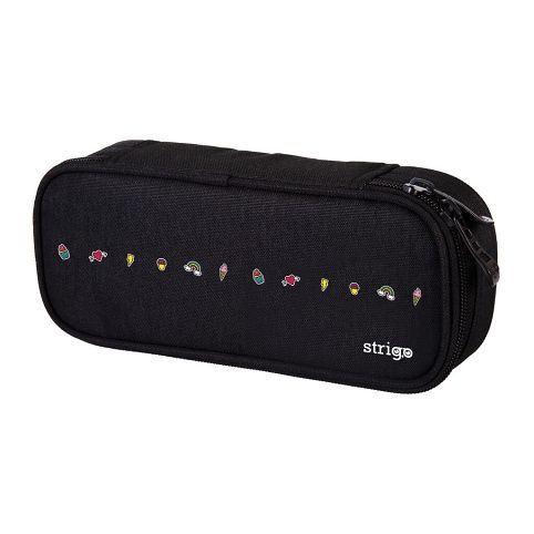 Školní pouzdro Strigo. Vyrobeno z vysoce kvalitního materiálu odolného vůči nečistotám. Penál je vyztužený a má velkou vnitřní kapsu a klopu s prostorem na psací potřeby. Na horním krytu je kapsa. Penál má kvalitní zipy, které se otevírají na levou i pravou stranu.