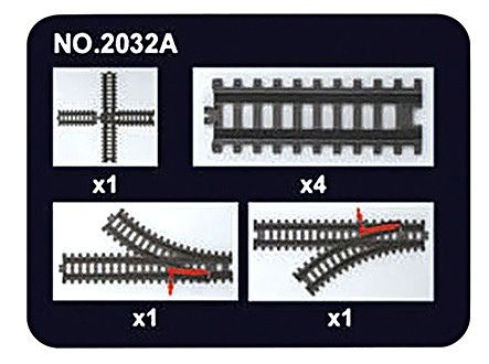 obsahuje – 1× křížení kolejí, 4× rovná, krátká kolej, 2× kolej