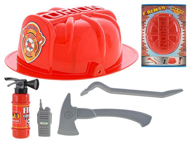 Dětský požární set, který potřebuje každý malý hasič. Set obsahuje červenou helmu, hasící přístroj, vysílačku a 2 ks nářadí. Celá sada je vyrobena z plastu. Vhodné od 3 let.