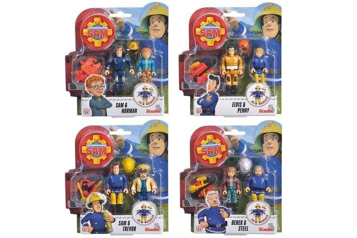 Plně pohyblivé figurky požárníka Sama a jeho kamarádů. V balení 2 ks figurek a 9 ks příslušenství (Elivs + Penny, Sam + Trevor, Sam + Norman, Steel + Derek). Velikost figurek 7,5 cm. 4 druhy.
