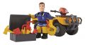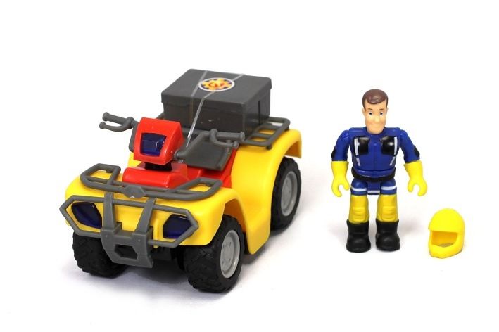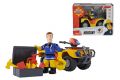 Požárník Sam se čtyřkolkou a příslušenstvím. Rozměry čtyřkolky: 12 x 7,5 x 7 cm.