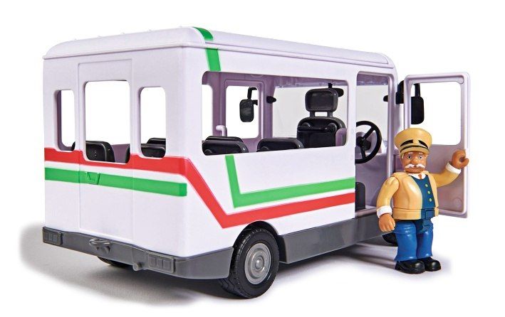 Trevorův autobus z oblíbeného seriálu Požárník Sam. Kapota motoru se při nárazu otevře a objeví se plameny. Otevírací dveře a střecha. Včetně figurky Trevora a dalšího příslušenství. Velikost 21 cm.