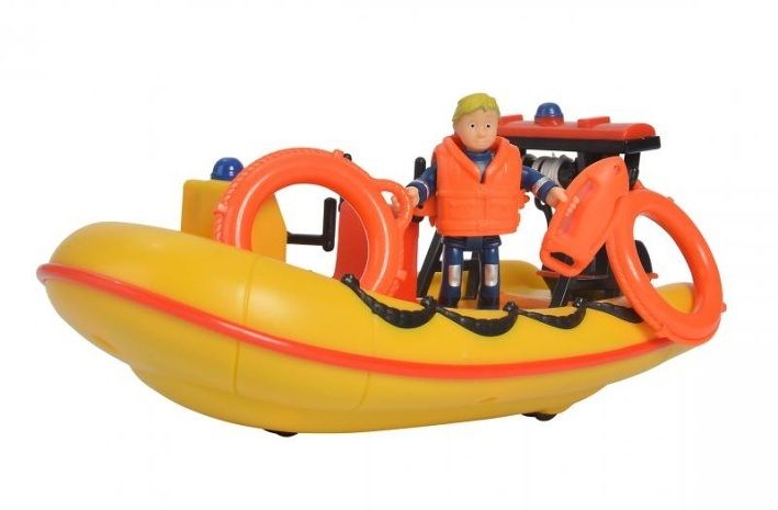 Záchranný člun Neptun z oblíbeného seriálu Požárník Sam. S tajnou přihrádkou a mechanickým navijákem. Figurka Penny v potápěčském oblečení a další příslušenství součástí. Délka člunu 20 cm. Člun jezdí s pomocí koleček.