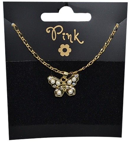 Pozlacený řetízek s přívěskem MOTÝL s PERLY