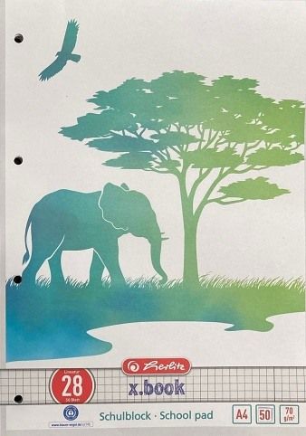 70 gsm, bílý papír, čtverečkovaný s 2 okraji, Blue Angel, no.28, děrovaný, motiv GREENline Slon