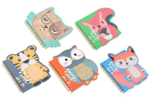 Poznámkový blok s roztomilým designem zvířátek. Blok je kroužkovaný, stránky jsou linkované.