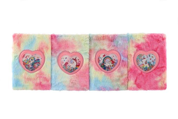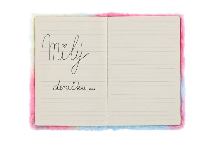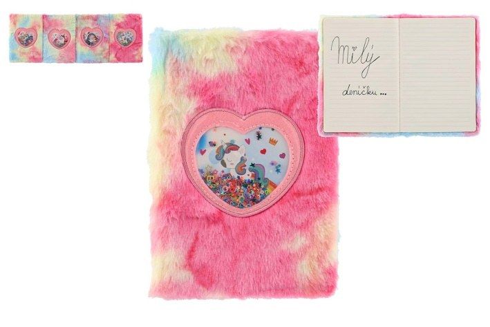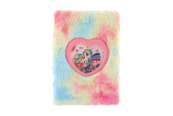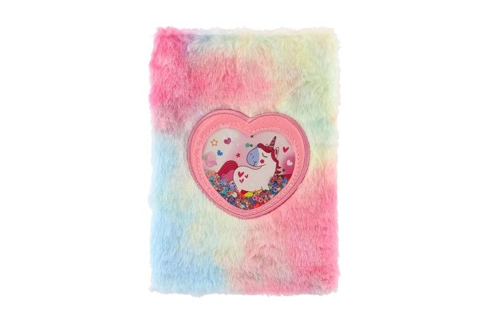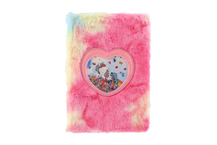 Krásný a cool zápisník v duhovém plyšovém obalu, který dělá tento blok jedinečným. Na jeho přední straně je i okénko s flitry a jednorožcem. Perfektní na poznámky, deníček nebo kresby.