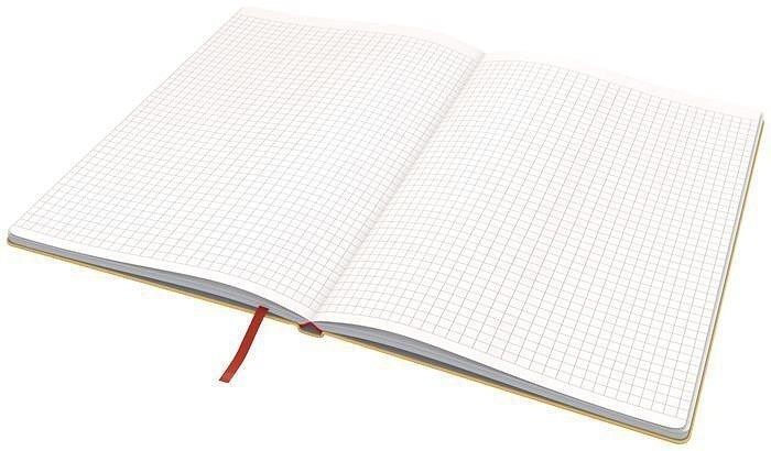 Čtverečkovaný poznámkový sešit se záložkou a praktickou úložnou kapsou na poslední straně