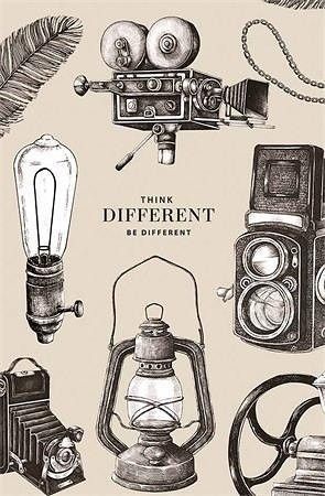 Poznámkový sešit "Think different be different", mix motivů, čistý, A6, 80 listů, tvrdé de