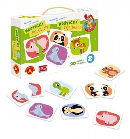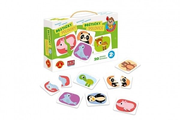 Hra Destičky Poloviny – 20 destiček se zvířátky, z nichž každá je rozdělena na dvě části. Během hry poznávají děti zvířátka, hledají a přiřazují k sobě správné poloviny zvířátek. Hra procvičuje motoriku a motivuje k lepšímu vnímání a logickému myšlení.