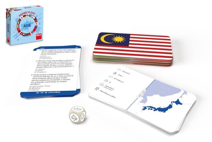 Poznej vlajky Asie cestovní společenská hra v krabici 13x13cm