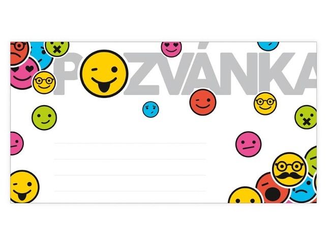 Pozvánka na narozeninovou oslavu a párty se smajlíky - Budeš mít narozeninovou párty a chceš pozvat kamarády? Pošli jim pozvánku na oslavu! Na pozvánce jsou řádky, kam se vypíše např. jméno, datum a čas oslavy, místo oslavy anebo menší vzkaz. Uvedená cena je za 10 ks.