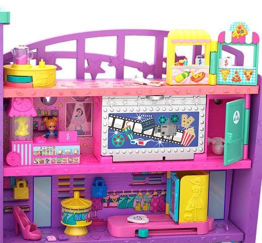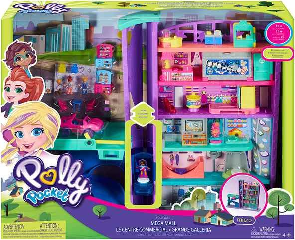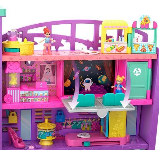 Přijďte navštívit Pollyville ™, malé rodné město Polly Pocket ™, které je plné velkých překvapení! Pollyville Mega obchoďák nabízí 6 pater nákupní zábavy, herní pomůcky pro zážitky z vyprávění příběhu, parkovací garáž a vozidlo, které vás dostane také domů! Uprostřed obchodního centra se nachází kouzelný otáčecí výtah a pidi panenka Polly ™ nebo Lila ™ může jezdit ve výtahu a navštívit všech 6 pater! Balení obsahuje Mega obchoďák s 6 patry/hracími plochami, hrací figurky, parkovací garáž, vozidlo, pidi panenky Polly ™ a Lila ™, psa Broskvičku, samolepky a příslušenství. Každá se prodává samostatně v závislosti na dostupnosti. Barvy a vzhled výrobku se mohou lišit.