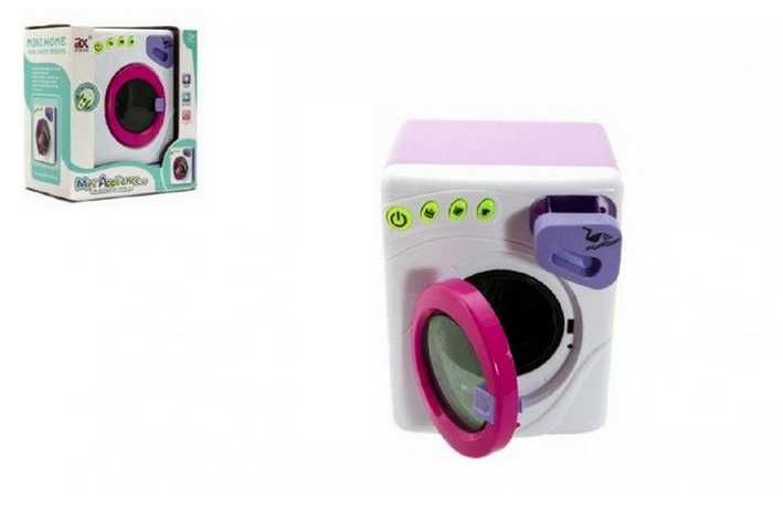 Plastová pračka na baterie, která vydává zvuky praní. Pěkná pračka pro děti v bílém provedení.