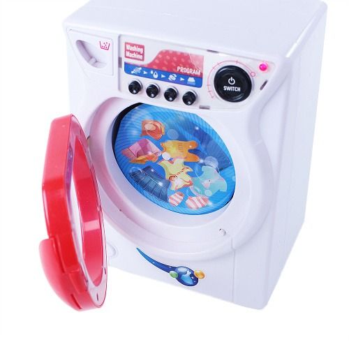 Pračka se světlem a zvukem je určena pro děti od 3 let. Stisknutím tlačítka v horní části a následným stisknutím tlačítka programu začne pračka svítit a vydávat reálné zvuky. Pračka má otevírací dveře a funkční zásobník na prací prostředek. Pračka o rozměrech 16 x 22 cm je vyrobena z PVC a vyžaduje 3 ks baterií typu AA, které nejsou součástí balení. Baleno v krabici.