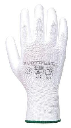 Pracovní rukavice máčené na dlani a prstech v polyuretanu, velikost 8, bílé