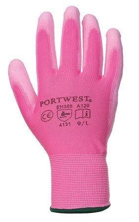 Pracovní rukavice máčené na dlani a prstech v polyuretanu, velikost 8, růžové