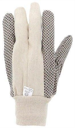 Pracovní rukavice šité z bavlny s protiskluzovými terčíky z PVC, velikost 9, bílé