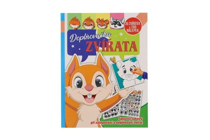 Pracovní sešit se samolepkami Doplňovačka zvířata + 200 nálepek CZ verze 21x28cm