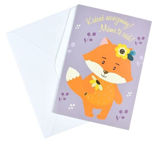Přání k narozeninám, 13,5 x 19,5 cm, liška