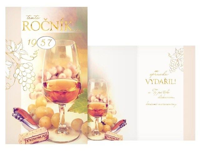 Přání k narozeninám otočné s obrázkem skleničky vína - Oslavy narozenin patří k výjimečným a příjemným okamžikům v životě. Potěště oslavence a spolu s dárkem mu věnujte originální a krásné přáníčko, které mu bude připomínat tuto radostnou událost. Díky dvěma otočným kolečkám můžete na přání nastavit požadovaný ročník narození od 1900 do 1999. Přání je s obrázkem vína. Text na přední straně přání: Tento ročník 19.. Text uvnitř přání: se opravdu vydařil! A ty jsi toho důkazem, krásné narozeniny Papír: pohlednicový karton 240 g Přání je baleno v sáčku, součástí balení je i dopisní obálka.