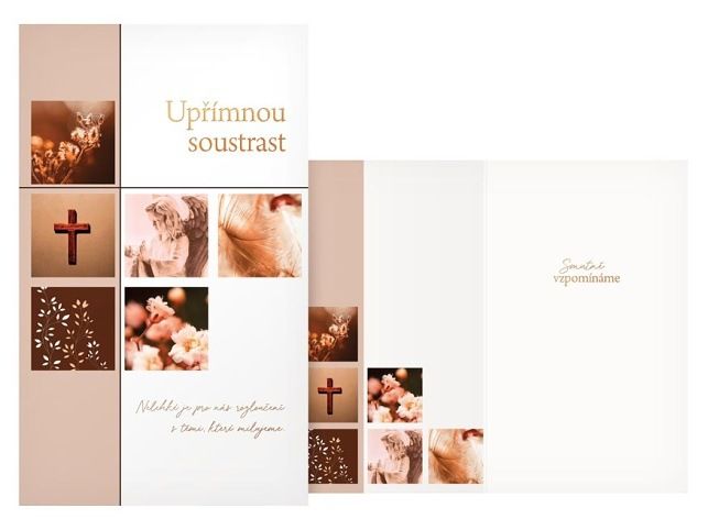 Úmrtí blízké osoby je vždy tragická událost. Vyjádřete kondolencí upřímnou soustrast a soucit pozůstalým. Kondolenční přání a smuteční květiny Vám zajistí důstojné rozloučení s vaším blízkým člověkem. Text na přední straně přání: Upřímnou soustrast Nelehké je pro nás rozloučení s těmi, které milujeme. Text uvnitř přání: Smutně vzpomínáme Papír: pohlednicový karton 240 g Přání je baleno v sáčku, součástí balení je i dopisní obálka.