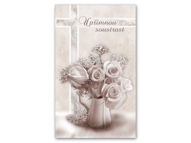 Text na přední straně přání: Upřímnou soustrast Text uvnitř přání: Kéž láska pomůže překonat dnešní smutek a přinese naději do dní Příštích.