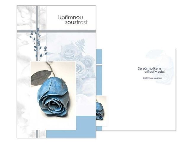 Úmrtí blízké osoby je vždy tragická událost. Vyjádřete kondolencí upřímnou soustrast a soucit pozůstalým. Kondolenční přání a smuteční květiny Vám zajistí důstojné rozloučení s vaším blízkým člověkem. Přání je s obrázkem modré růže. Text na přední straně přání: Upřímnou soustrast Text uvnitř přání: Se zármutkem a lítostí v srdci. Upřímnou soustrast Papír: pohlednicový karton 240 g Přání je baleno v sáčku, součástí balení je i dopisní obálka.