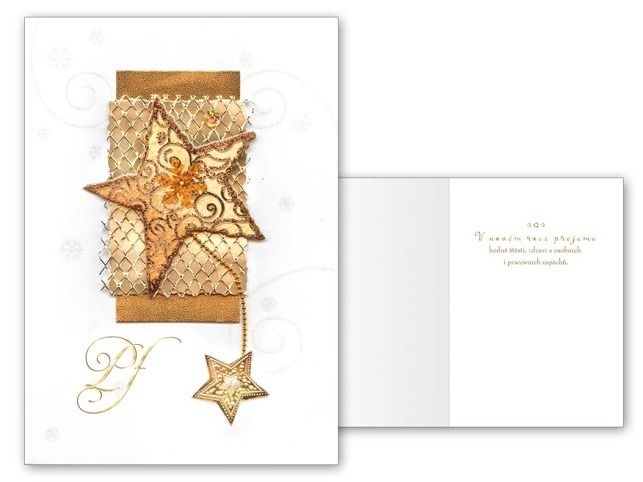 Novoroční přání s textem, neboli PF. Nezapomeňte popřát známým do nového roku. Zajisté je potěší, že jste si na ně vzpomněli. Text na přední straně přání: Pour Féliciter Text uvnitř přání: V novém roce přejeme hodně štěstí, zdraví a osobních i pracovních úspěchů Papír: pohlednicový karton 240 g Přání je baleno v sáčku, součástí balení je i dopisní obálka.